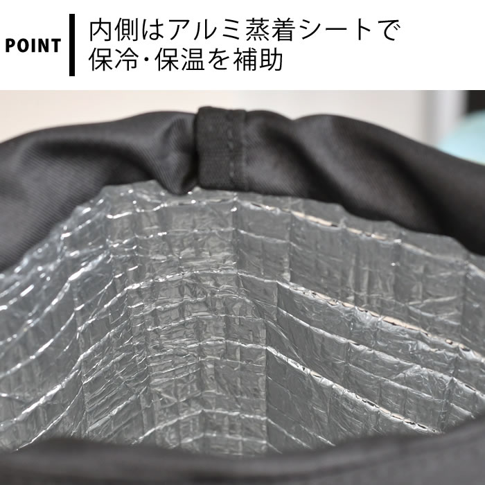 仕様 アルミ蒸着シートで保冷・保温を補助、バックル付き、片側持ち手付き |
