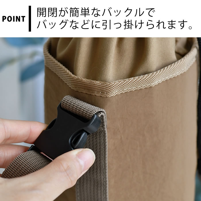 落ち着いたカラーの 2Lペットボトルや直径11cm前後の大容量ボトルが入る大きなサイズのボトルホルダー。 内側はアルミ蒸着シート加工で保冷・保温効果を補助します。 肩掛けできるストラップは最長約75cmで、飲むときに持ちやすい片側ハンドル付き。 暑い季節の外出やアウトドアシーンに大活躍します。 ![]() ![]() ![]() ![]() ![]() ![]() ![]() ![]() |