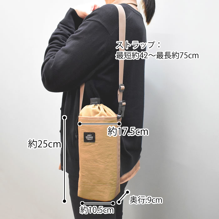 サイズ 約 W10.5×D9×H25cm(ショルダー最長約75cm) 直径約11cm前後、900ml以上のボトルが適合 |