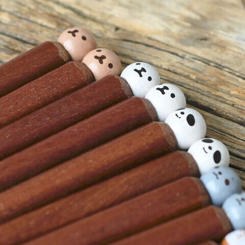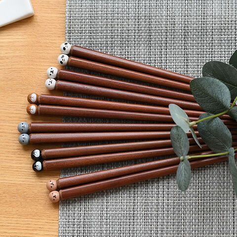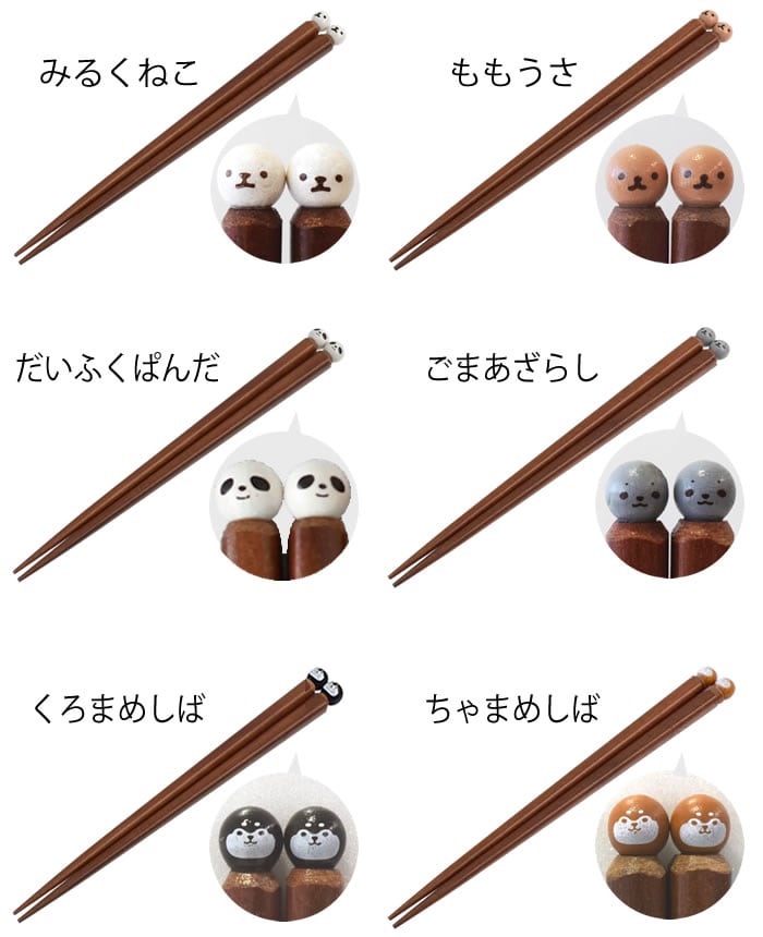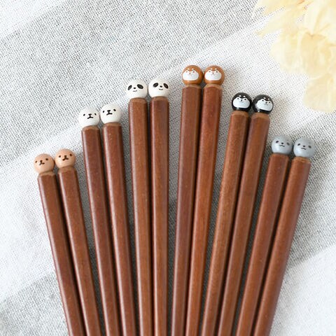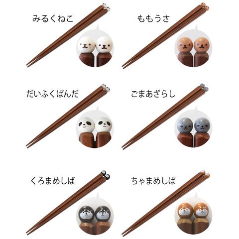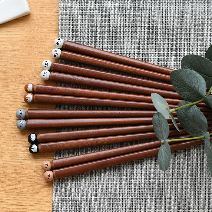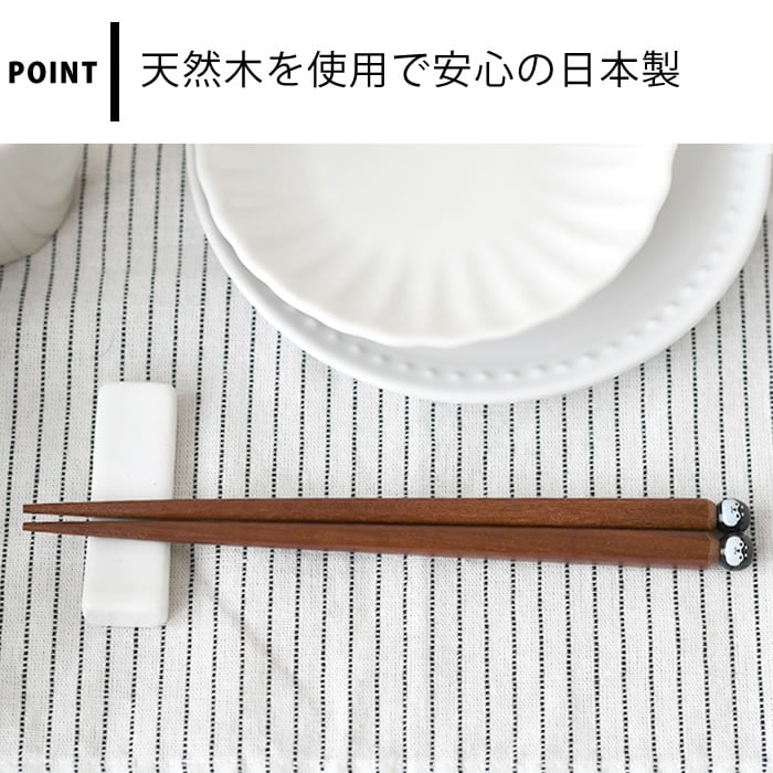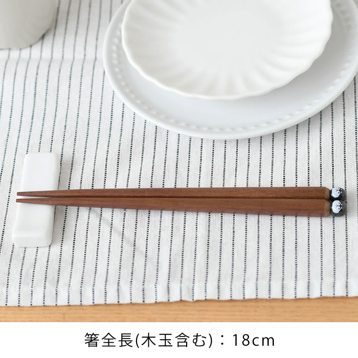 お箸にちょこんと乗った姿がかわいい天然木のお箸で毎日の食事時に癒してくれます。