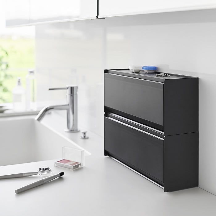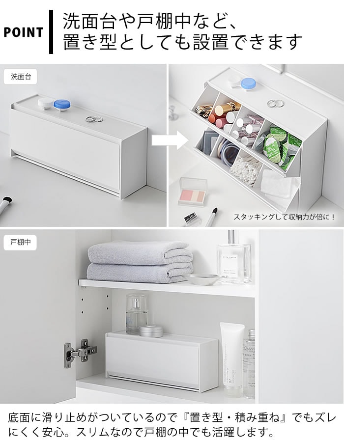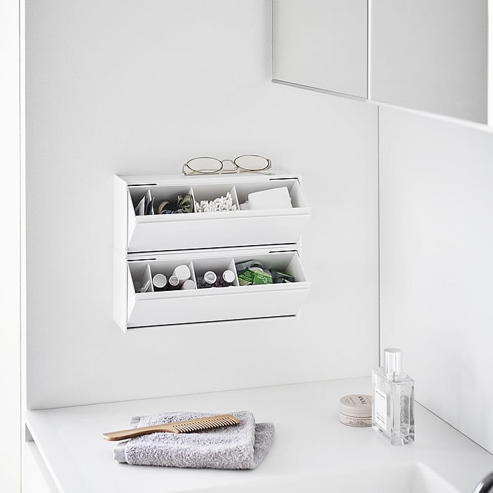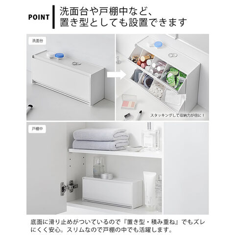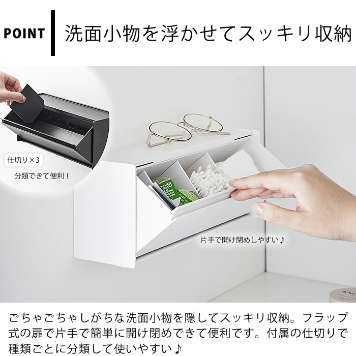 洗面台 収納 ウォール洗面収納ケース タワー 石こうボード壁対応 tower 洗面所 浮かせる収納 フラップ式 メイク シンプル アメニティ 綿棒 タワーシリーズ 山崎実業 yamazaki ヤマジツ 隠す 仕切り スタイリッシュ 1355 1356 コンタクト