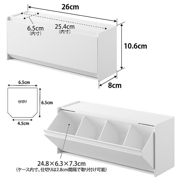 サイズ 本体:約 W26×D8×H10.6cm ケース:約 W24.8×D6.3×H7.3cm 仕切り間隔:約 W2.8cm |