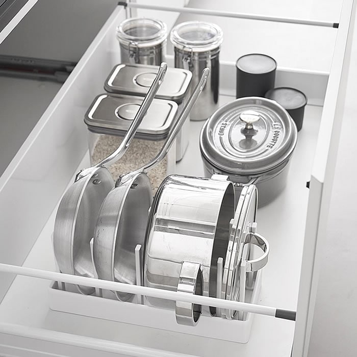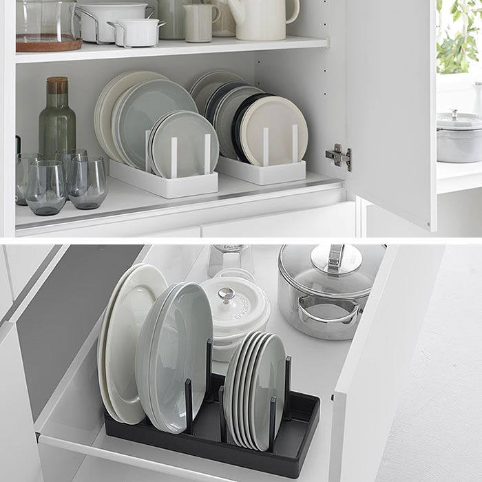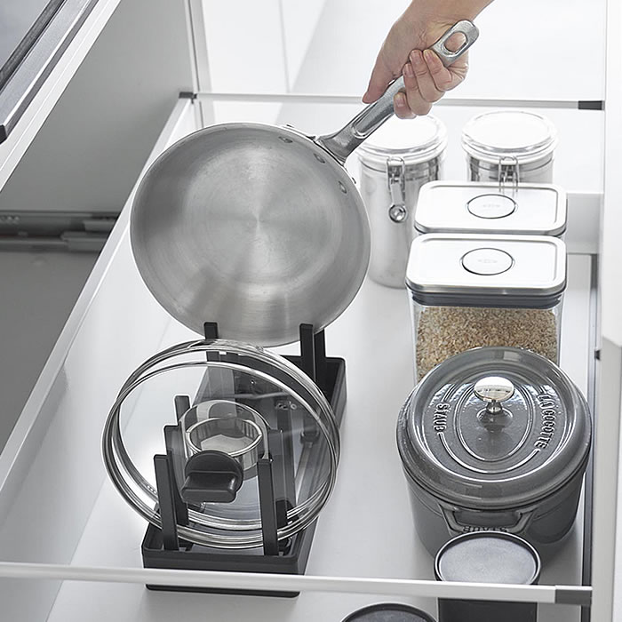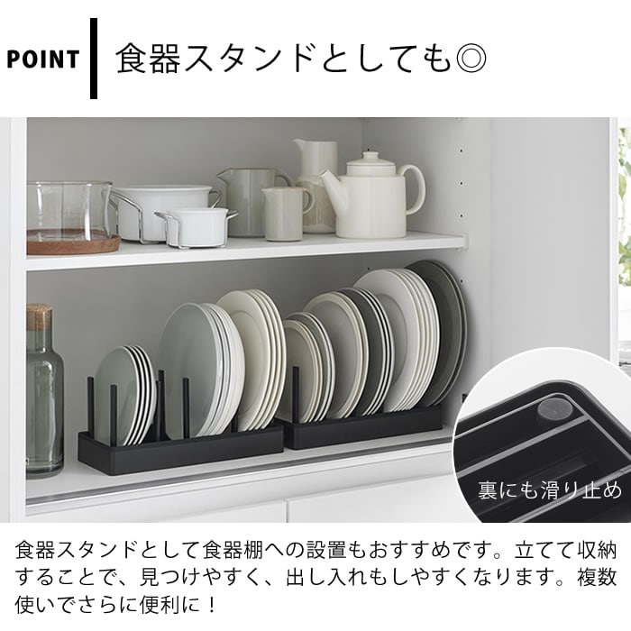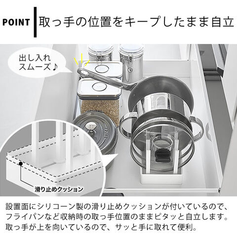 立てる収納でスッキリ片付く シンク下の限られたスペースを有効活用できる幅32cmの収納スタンドです。仕切り幅を自由に調節でき、鍋やフライパンを立てて収納できます。シリコーン製の滑り止めクッションが付いており、フライパンなど収納時の取っ手位置のまま自立するので取り出しもスムーズ。裏面にも滑り止めが付いているので、引き出しの開閉時にずれにくくキズから守ります。食器スタンドとして食器棚への設置もおすすめです。 ![]() ![]() ![]() ![]() ![]() ![]() ![]() ![]() |