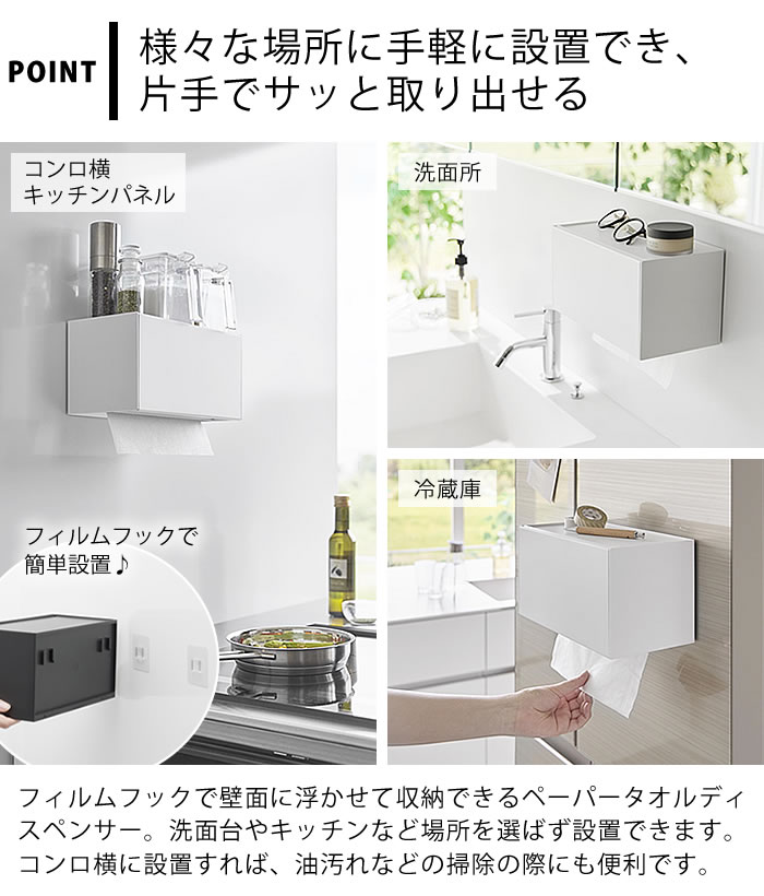 ペーパータオルホルダー 壁掛け フィルムフックペーパータオルディスペンサー タワー tower ペーパータオルケース キッチンペーパーホルダー タワーシリーズ おしゃれ ティッシュケース 1377 1378 山崎実業 yamazaki ヤマジツ 洗面所