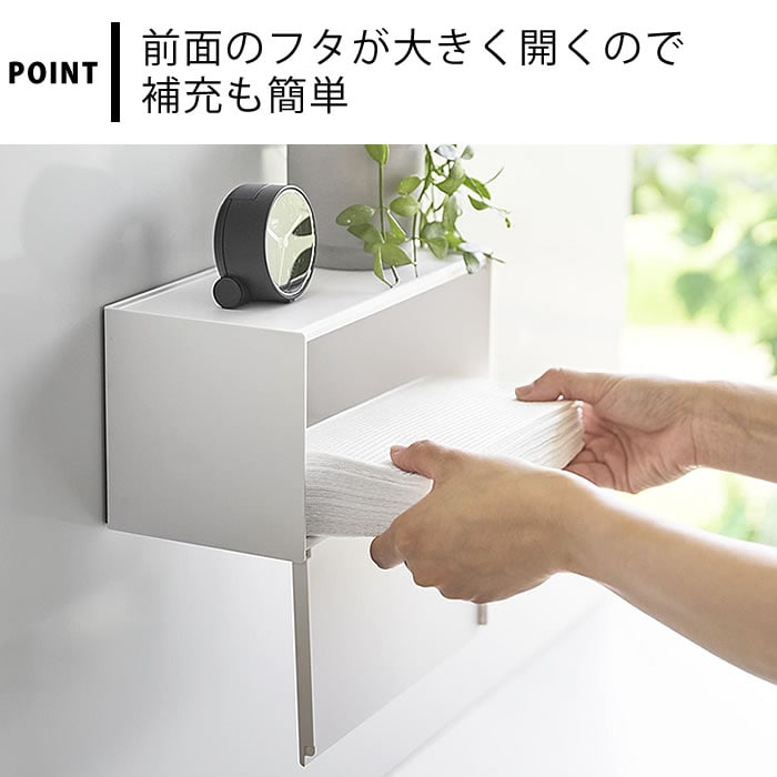 場所を選ばずスマートに設置 フィルムフックで洗面所やキッチン、冷蔵庫などに簡単取り付け!片手でサッと取り出せるペーパータオルディスペンサーです。シンプルでスタイリッシュなデザインなので場所を選ばずスマートに設置できます。天板はトレーになっているので、小物置きとして使用できます。前面の蓋は大きく開くのでペーパーの補充も簡単です。 ![]() ![]() ![]() ![]() ![]() ![]() ![]() ![]() ![]() |