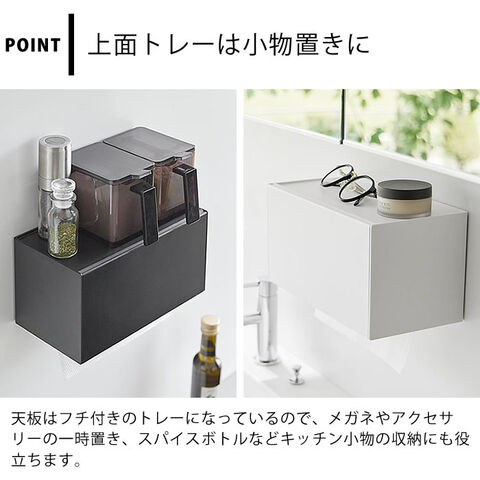 サイズ 本体:約 W26×D13.6×H13.6cm 蓋開口時:約 H26.3cm フィルムフック接着面:約 W6×H6cm(1つあたり) |