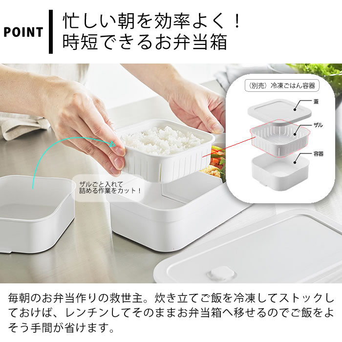 | 商品名 | 冷凍ごはん用のザルがそのまま入るバルブ付き密閉ランチボックス タワー | 商品詳細 |