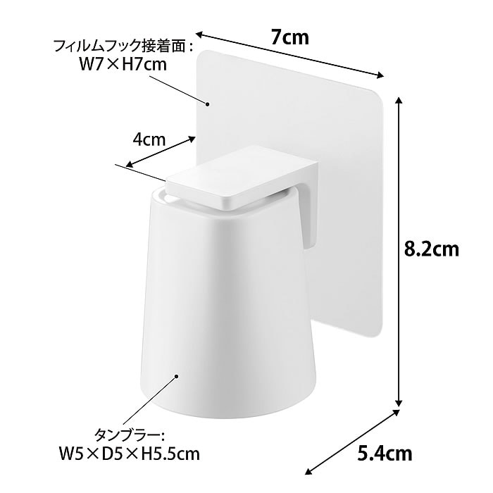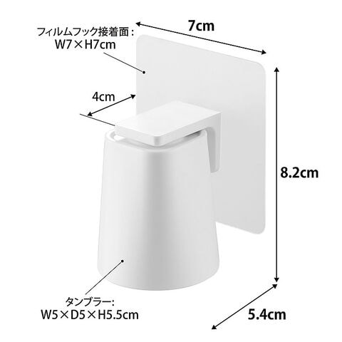 サイズ タンブラー:約W5×D5×H5.5cm フィルムフック:約W7×D4×H7cm 収納時全体:約W7×D5.4×H8.2cm |