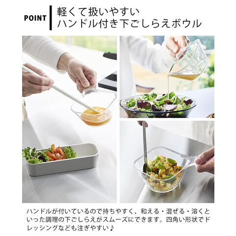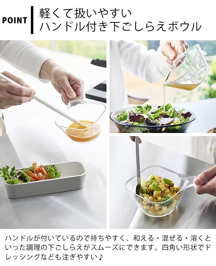 電子レンジ対応洗いやすいハンドル付き下ごしらえボウル タワー tower ボウル 耐熱 下ごしらえボール 調理 ボウル 日本製 食洗機対応 持ち手付き 山崎実業 yamazaki ヤマジツ 耐熱容器 タワーシリーズ 冷凍 10129 クリア 目盛り付き