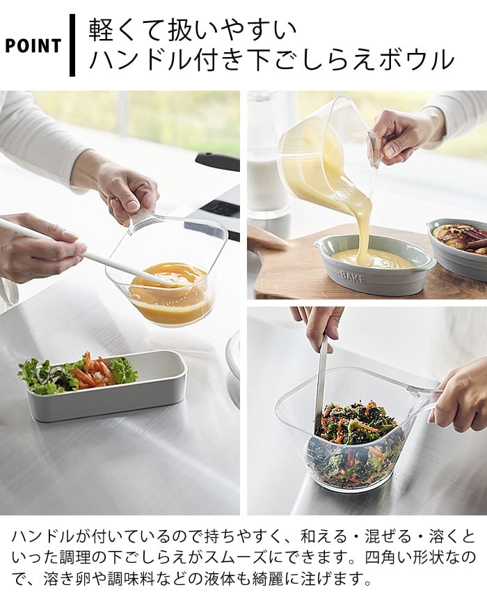 電子レンジ対応洗いやすいハンドル付き下ごしらえボウル タワー tower ボウル 耐熱 下ごしらえボール 調理 ボウル 冷凍 耐熱容器 持ち手付き 10130 クリア 山崎実業 yamazaki ヤマジツ 食洗機対応 タワーシリーズ 日本製 目盛り付き