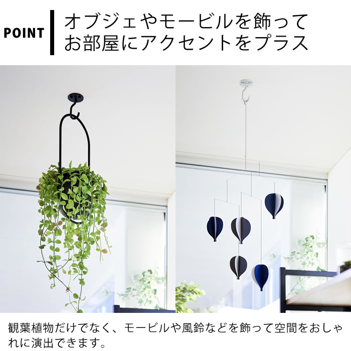 天井から吊り下げできるプランターフック タワー 石こうボード壁対応 tower 天井 フック 観葉植物 プランター 植木 10227 10228 飾り 壁面 吊り下げ モビール 山崎実業 yamazaki ヤマジツ ハンガー おしゃれ タワーシリーズ ハンギング