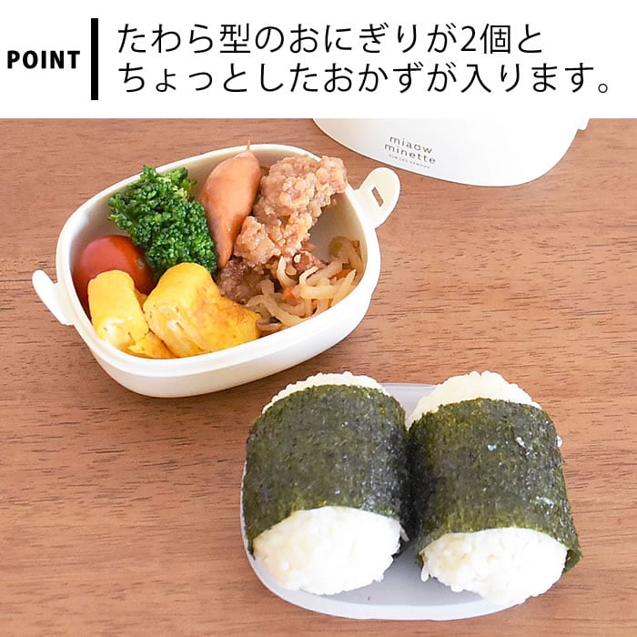 仕様 電子レンジ:使用可能(中フタを除く) 食洗機:使用不可 上段にたわら型おにぎり2個、下段におかずが入ります。 フタ部分はねこのごはん型抜きとしても使えます。 |