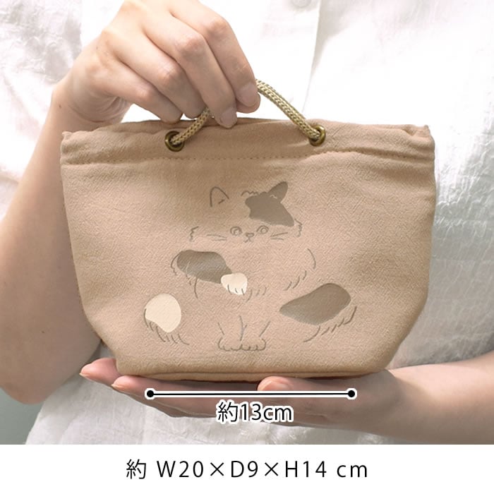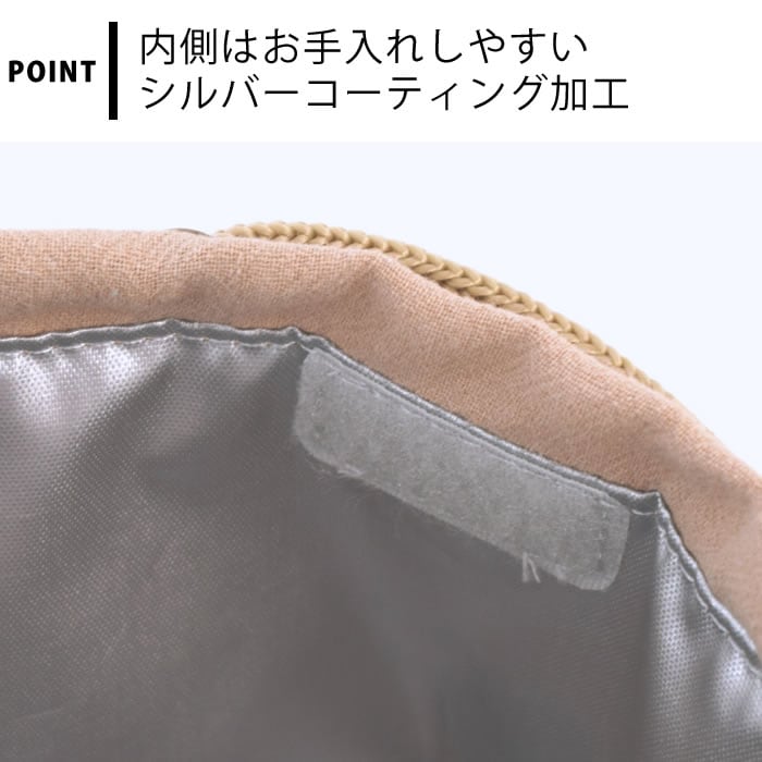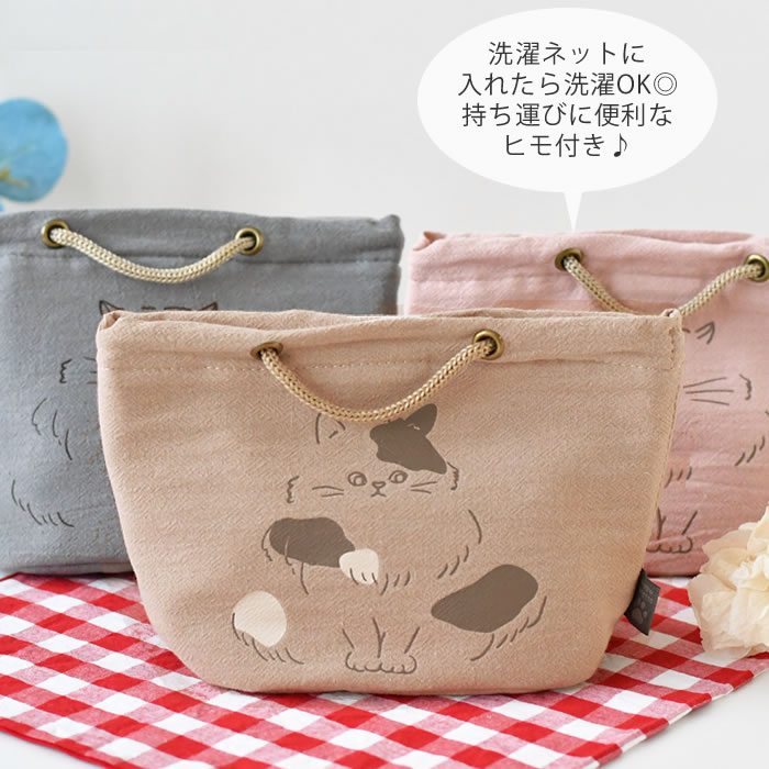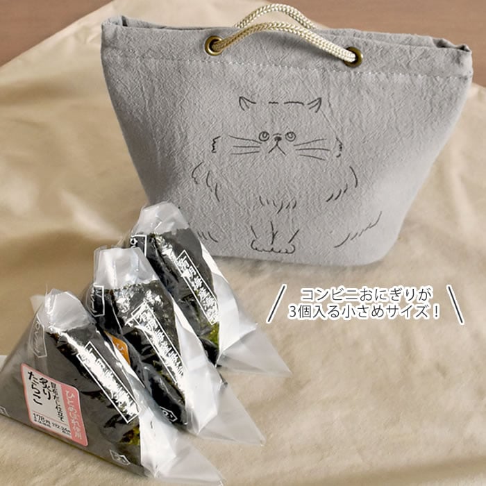 仕様 手持ちに便利なヒモ付き、裏地シルバーコーティング、同シリーズのおにぎりケースが入るサイズ(にくきゅうコンビセットは斜めにすれば入ります)。 |