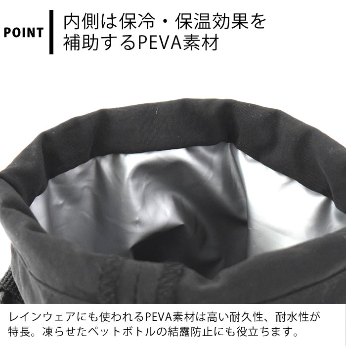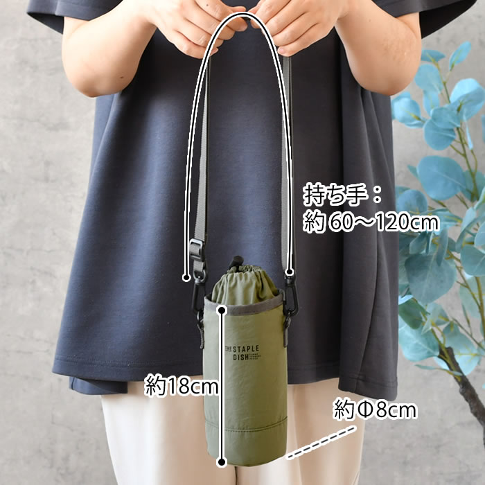 仕様 取り外しできるストラップ付き(最長120cm) 内側にPEVA素材を使用 保冷・保温効果を補助します。 手洗いOK |