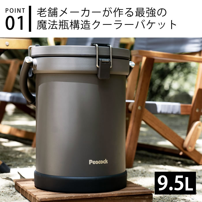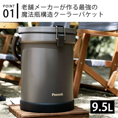 | クーラーボックス ピーコック peacock クーラーバケット バケツ型 真空二重構造 9.5L 保冷力 スポーツ 最強 アイスペール 350ml缶 16本 キャンプ 氷 |