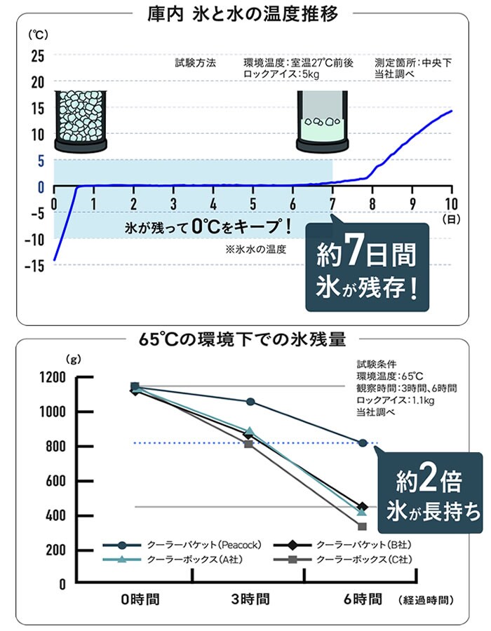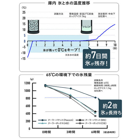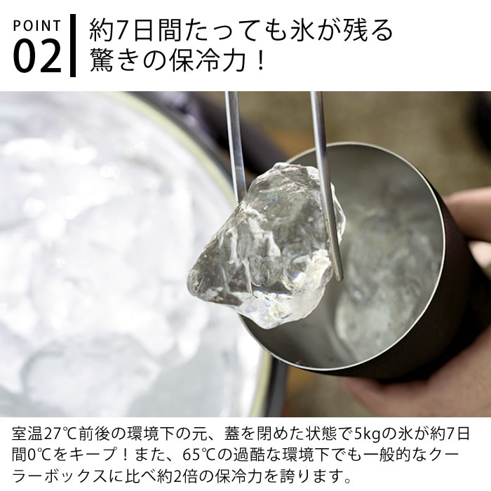 魔法瓶の真空二重構造で、約7日間も氷が残る最強の保冷力。