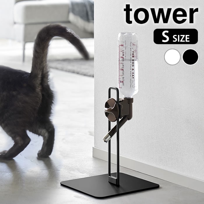 ペット用ボトル給水器スタンド タワー tower 給水器 犬 猫 ペット 給水器 スタンド ウォーターディッシュ 高さ調節 おしゃれ ウォーター ノズル 水飲み器 受け皿 タワーシリーズ ペット用品 山崎実業 yamazaki ヤマジツ 10009 10010