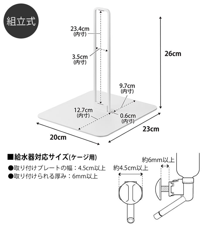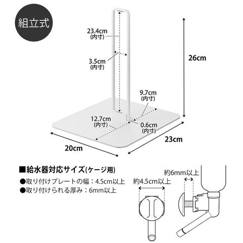 対応サイズ 給水器の取り付けプレートの幅:4.5cm以上 取り付けられる厚み:6mm以上 |