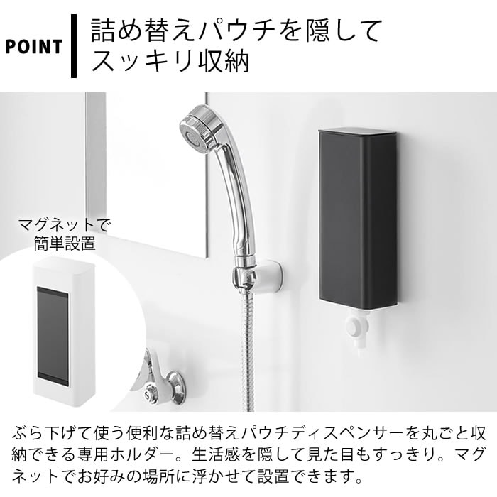 マグネットバスルーム詰め替えパウチディスペンサー収納ホルダー タワー tower シャンプー 詰め替え 吊り下げ ボディーソープ コンディショナー 山崎実業 yamazaki ヤマジツ 10139 10140 磁石 浮かせる 浴室 タワーシリーズ おしゃれ