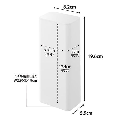 内寸サイズ 容器:約 W7.7×D5×H17.4cm ノズル用開口部:約 W2.9×D4.9cm |