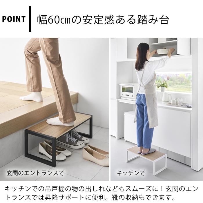 安定感のある60天板 安定感があり、お子様や年配の方でも安心して使える天板の面積が広い横幅60cmのワイドな踏み台です。エントランスでは玄関のたたきに置いて昇降のサポートに。天板下はシューズの収納スペースとして有効活用できます。天板の幅が広いので高い場所に収納した物を取り出す際も安心です。出し入れの手間がない据え置きタイプ。インテリアにも馴染むスチールと木の組み合わせがおしゃれなデザインです。 ![]() ![]() ![]() ![]() ![]() ![]() ![]() ![]() |