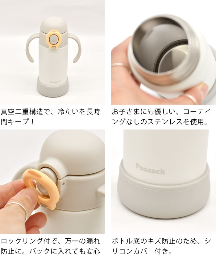 水筒 キッズ ストロー ピーコック Peacock ベビーストローマグ 350ml 保冷 水筒 ストロー キッズ 取っ手 0.35 出産祝い ベビーマグ ステンレス 赤ちゃん ギフト 食洗機対応 ワンタッチ 直飲み おしゃれ マグボトル プレゼント 水筒