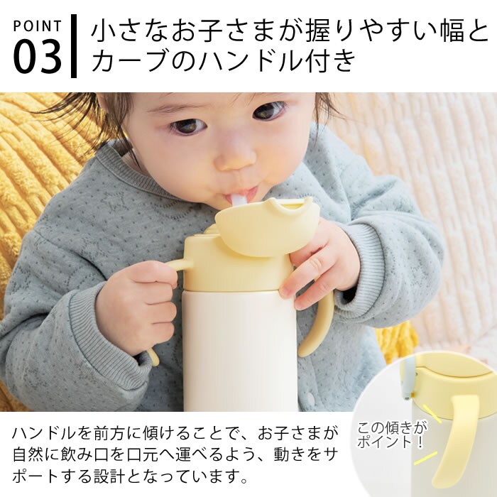 小さな手にぴったりフィット♪ 真空二重構造でしっかり保冷。漏れにくく、赤ちゃんでも飲みやすいストロー設計。 全パーツ食洗機対応で、お手入れも簡単です! お子様でも持ちやすく飲みやすい両手ハンドル付きで、7ヵ月頃からお使いいただけます。 また、瓶底を傷や衝撃から守るカバーや、ロックリング付きで、お出かけにぴったりの安心設計です。 シンプルなデザインとカラーで、プレゼントにもおすすめ◎ ![]() ![]() ![]() ![]() ![]() ![]() ![]() ![]() ![]() ![]() |