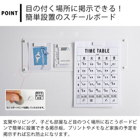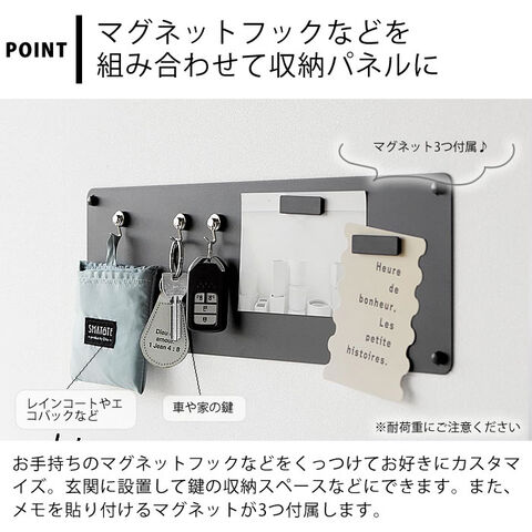 目のつく場所にプリント管理 石こうボードピンで簡単に取り付けできるマグネット対応のスチール製プリントパネルです。見えやすい場所にプリントを管理することができます。玄関に設置してお手持ちのマグネットフックを付ければ鍵の収納スペースにもなります。設置場所や用途に合わせて縦横お好みの向きに取り付けが可能です。付属のマグネットが3個付き。壁の穴が目立ちにくい石こうボードピンで簡単取り付け。木ネジでも取り付け可能です。 ![]() ![]() ![]() ![]() ![]() ![]() ![]() ![]() |