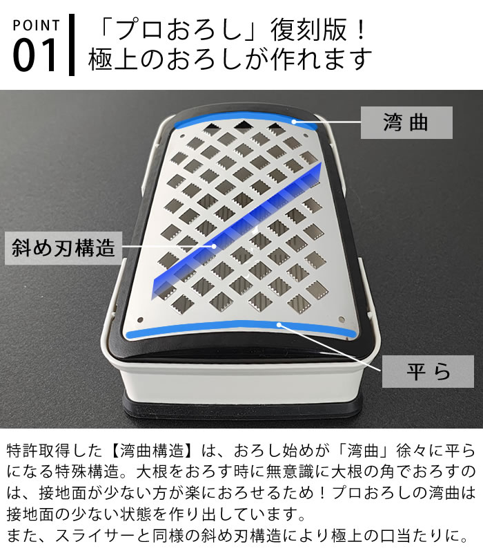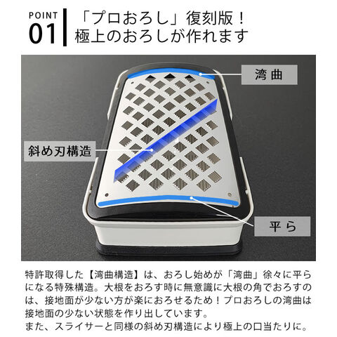 | おろし器 日本製 和田商店 プロおろしV 調理器具 おろし金 日本製 傾斜 湾曲構造 水切り付き スノコ 大根 ステンレス製 楽におろせる 滑り止めゴム付き 離乳食 |