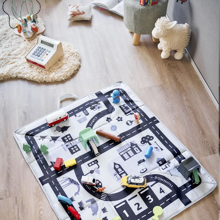 プレイマットにもなるおもちゃ収納 タワー tower おもちゃ 箱 柔らかい 折り畳み キッズマット 10169 軽い ベビーマット 整理 タワーシリーズ ラグ 山崎実業 yamazaki ヤマジツ カラーボックス 道路 車 かわいい