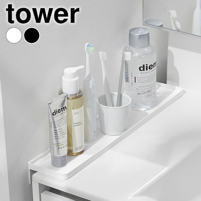 洗面台横隙間トレー タワー tower 洗面台 隙間 小物トレー 歯ブラシ 洗顔 落下防止 タワーシリーズ シンプル 壁面 小物置き おしゃれ 工具不要 10135 10136 コップ 山崎実業 yamazaki ヤマジツ ランドリー 一時置き トイレ すき間