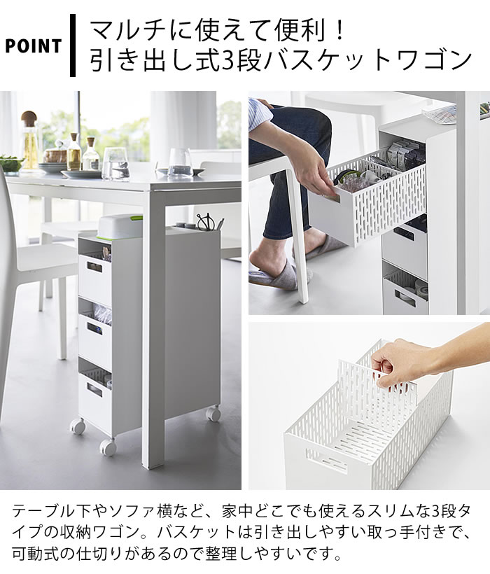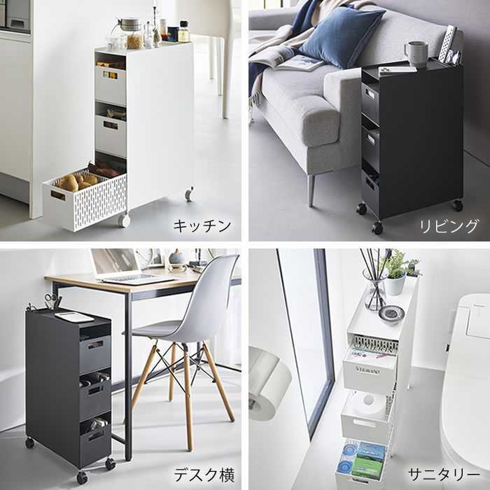 収納バスケットワゴン タワー 3段 tower ワゴン キャスター付き 引き出し キッチンワゴン 天板付き リビング デスクワゴン 山崎実業 yamazaki ヤマジツ タワーシリーズ スリム おしゃれ 10015 10016 サイドテーブル