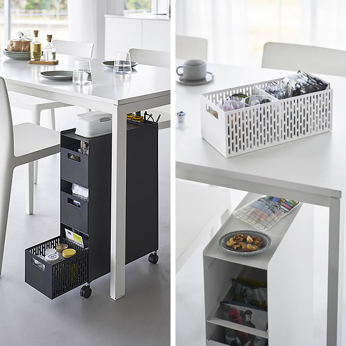 家中どこでも活躍! テーブル下やソファ横など、家中どこでも使える3段バスケットワゴンです。引き出しやすい取っ手付きのバスケットに小物をスッキリと収納できます。さらに背面にもポケットがあり、収納力抜群。キャスター付きなので移動もスムーズ。リビングやダイニング、サニタリールームなど限られたスペースにも置きやすいスリムなスチールワゴンです。 ![]() ![]() ![]() ![]() ![]() ![]() ![]() ![]() ![]() ![]() |