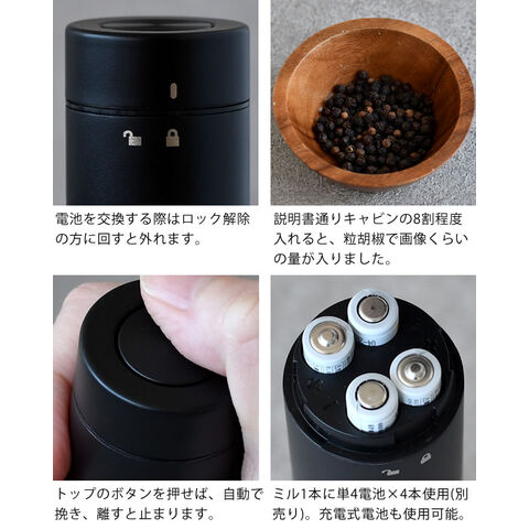 ※岩塩(クリスタルソルト)は様々な種類の物が販売されている為、粒の大きさや硬度によって使用できない場合がございます。大きさについては粒胡椒を参考にお選びください。