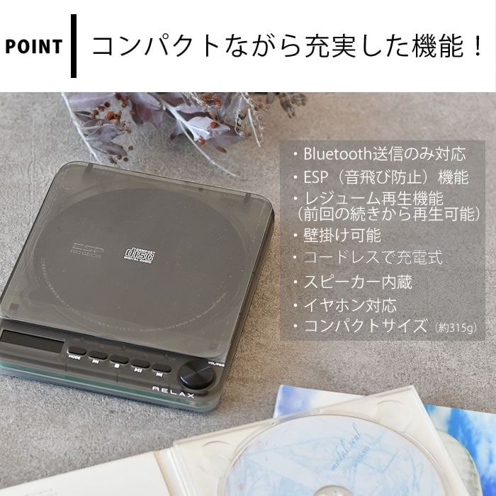 cdプレイヤー レトロ ピクセルチューンズ CD プレイヤー シンシア ポータブル イヤホンジャック ワイヤレス ESP機能 卓上 音飛び防止機能 コンパクト 高音質 Bluetooth コードレス 壁掛け スケルトン 小型 おしゃれ