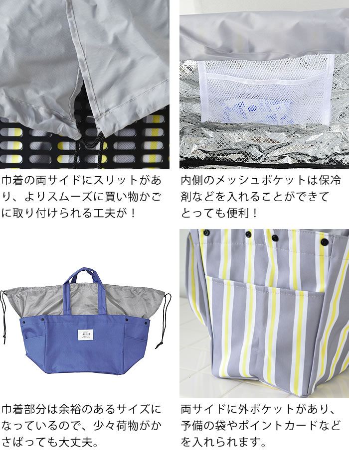 保冷ができる! 買い物かごのサイズにぴったりな保冷ショッピングバッグ! 買い物かごへセットすれば、袋への入れ替えの手間がなくスムーズにお買い物ができます。 内側に保冷剤を入れるのに便利なメッシュポケットが付きで、バッグは目隠しにもなる巾着仕様。 バッグについているボタンを留めれば、コンパクトに折りたため持ち運びもラクラク。 ![]() ![]() ![]() ![]() ![]() ![]() ![]() ![]() ![]() ![]() ![]() ![]() ![]() ![]() ![]() |