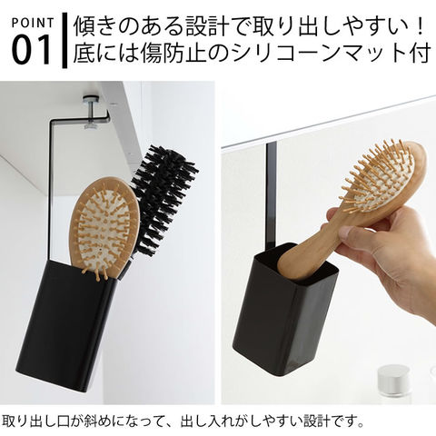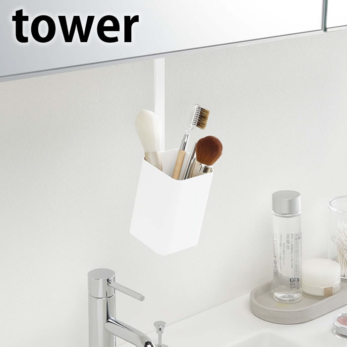 洗面戸棚下ブラシホルダー タワー tower 洗面台 収納 吊り戸棚下収納 メイクブラシ 収納 ブラシスタンド 化粧筆 スタンド ホワイト ブラック ヘアブラシ くし タワーシリーズ 化粧ブラシ 収納 洗面所 洗面台 隙間収納 コンパク ヤマジツ 山崎実業