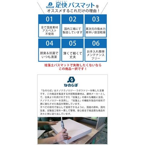 | 珪藻土バスマット なのらぼ 足快バスマット バスマット レギュラー リバーシブル W57.5×D42.5cm 両面使える 日本製 おしゃれ シンプル 速乾 調湿 清潔 足拭きマット 薄い 軽い 丈夫 天然素材 防ダニ 脱衣所 ギフト 新築祝 結婚祝 |