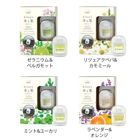 kitoca 木と果 消臭クリップ 4ml 車用芳香剤 車 消臭 カーエアコン用 カー フレグランス 天然 自然 アロマ 芳香 車内 ナチュラル リラックス おしゃれ プレゼント 日本 吹き出し口 エアコンルーバー ベルガモット カモミール ミント