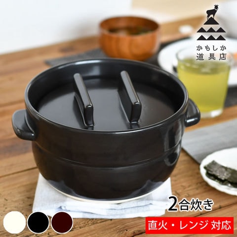 かもしか道具店 ごはんの鍋 2合 土鍋 ご飯 炊飯鍋 ご飯鍋 鍋 2合 ガス 直火 電子レンジ 陶器 美味しい 米 お米 黒 日本製 おしゃれ おすすめ ギフト 贈り物 プレゼント 新築祝い 炊飯 炊く ふっくら 便利 簡単 ご飯 ごはん 食器 釜