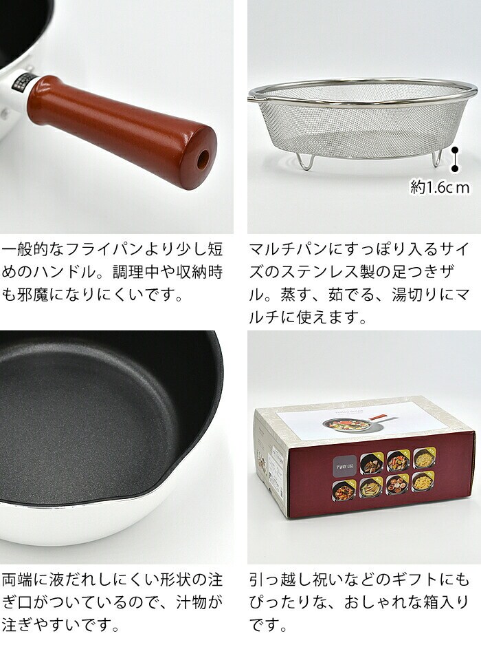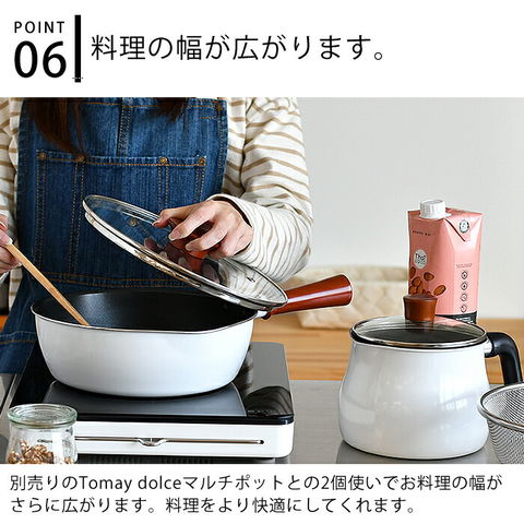 ToMay dolce トゥーメイドルチェ マルチパン 22cm マルチパン ガス 和平フレイズ IH対応 ガラス蓋 深型フライパン ホワイト ふっ素樹脂加工 高耐久 ステンレス製 ざる付 コンパクト ショートハンドル 1台7役 おしゃれ かわいい 重なる