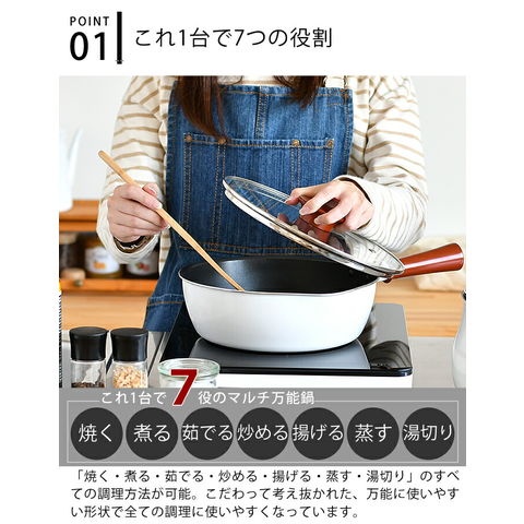 これ1台で、『焼く、煮る、茹でる、湯切り、炒める、揚げる、蒸す』の7役をこなす優れもの。