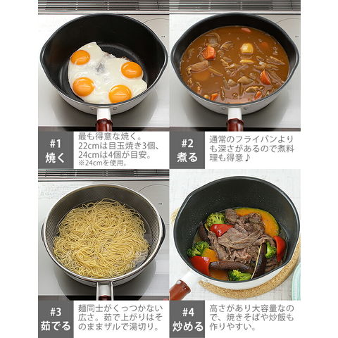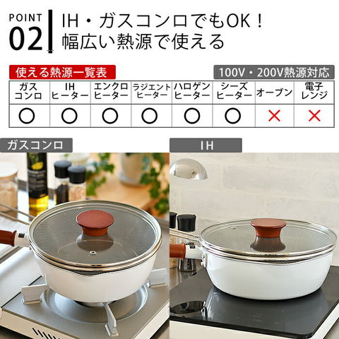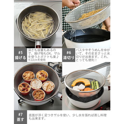 ※揚げ物に使用する際は適正油量を超えないようご注意ください。 ※食器洗浄機、食器乾燥機はご使用いただけません。 ※陶器等重みのあるものは使用しないでください。 ※その他、ご使用前には必ず「取扱説明書」をお読みの上、ご使用下さい。 |