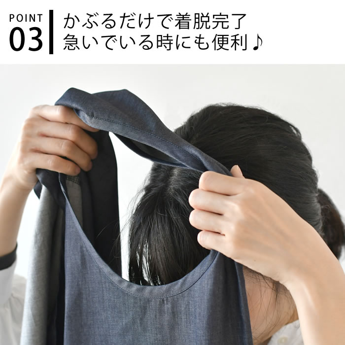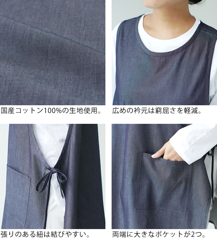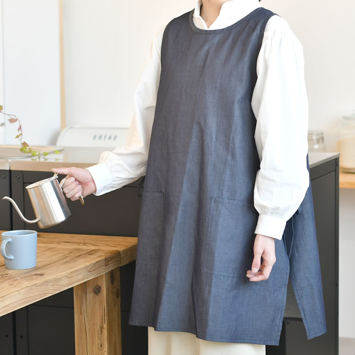 プルオーバーのようで デニムなのに柔らかくて軽い、サッとかぶって使える「デニムエプロン」が登場! デニムと聞くとゴワゴワとしていて重たいイメージがあると思いますが、不純物を取り除き表面をなめらかな手触りにした糸を使用しているので、 光沢があり上品で、肌触りも抜群です。洗濯をしても極端な色落ちがなく、当初の色味を長くお使いいただけます。 紐をサイドで結んでゆったり着たり、後ろの紐をお腹周りで結んで、前の紐を後ろで結ぶと少しフィット感のあるスタイルになり、作業内容や気分によって変えられる2way仕様。 また首からかける紐タイプではないので、首のストレスがありません! 素材から縫製まで全て純国産の日本製。ギフトにもおすすめです♪ ![]() ![]() ![]() ![]() ![]() ![]() ![]() ![]() ![]() ![]() ![]() |