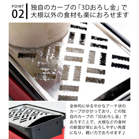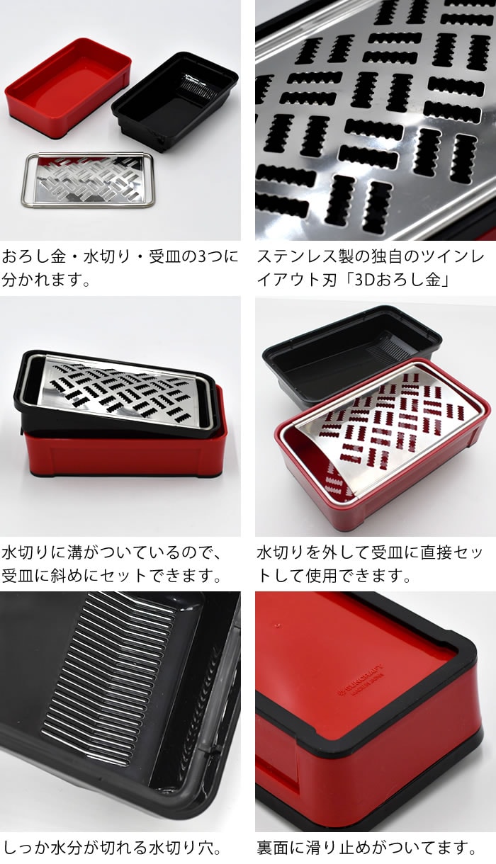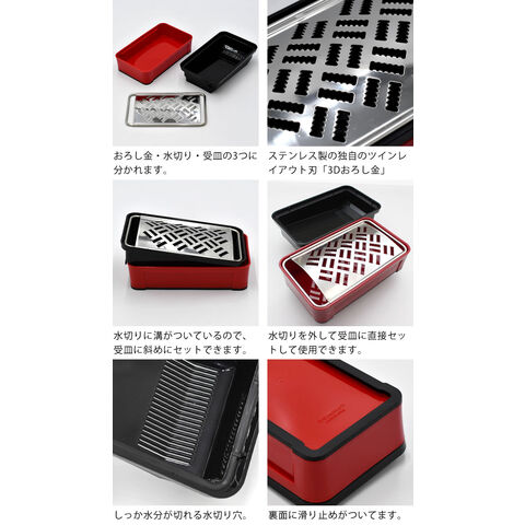 | SUNCRAFT サンクラフト スーパーおろし器 快菜 おろし 薬味 おろし金 日本製 大根おろし 便利 調理器具 ホルダー付き 水切り付き レッド ホワイト グリーン 3Dおろし金 野菜 スライス ブラック ステンレス キッチン用品 |