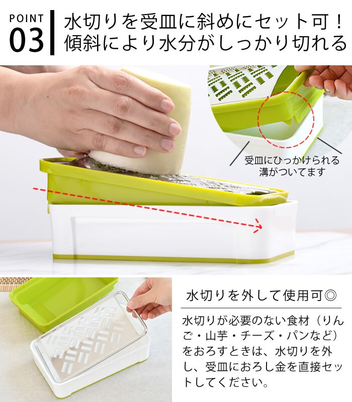 仕様 3Dおろし金、滑り止め付き、水切り |