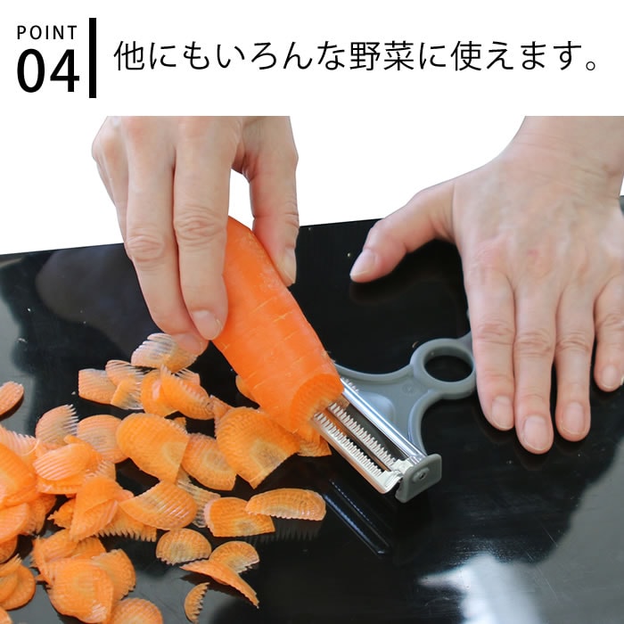 特許取得の2枚刃で スピーディーに千切りができる「nonoji ネイキッド キャベツピーラー ダブルグレー」。 ののじ定番のキャベツピーラーが二枚刃にパワーアップし、 さらにNAKEDオリジナルカラーとボディで登場! 切れ味に徹底的にこだわった鋭い高精密刃で、キャベツの繊維をサクサクとスライスします。 シャキッフワッのキャベツの千切りをご自宅でぜひお楽しみください。 ![]() ![]() ![]() ![]() ![]() ![]() ![]() ![]() |