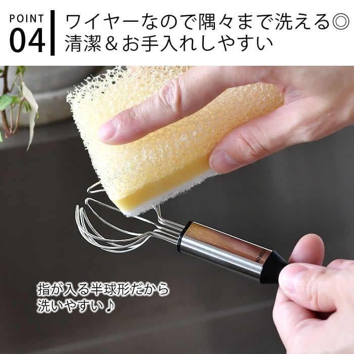 モノトーンでおしゃれ♪ おしゃれな味噌マドラー、「nonoji ネイキッド マルチワイヤースプーン ブラック」。 クルッとすくって簡単に味噌溶きができます。 ワイヤーの先端は半球のスプーンになっているので洗いやすく清潔です。 味噌マドラー以外にも、ポテトをマッシュしたり白身を泡立ててメレンゲにしたり、 色々使える万能ワイヤースプーンです♪ ![]() ![]() ![]() ![]() ![]() ![]() ![]() ![]() ![]() ![]() |