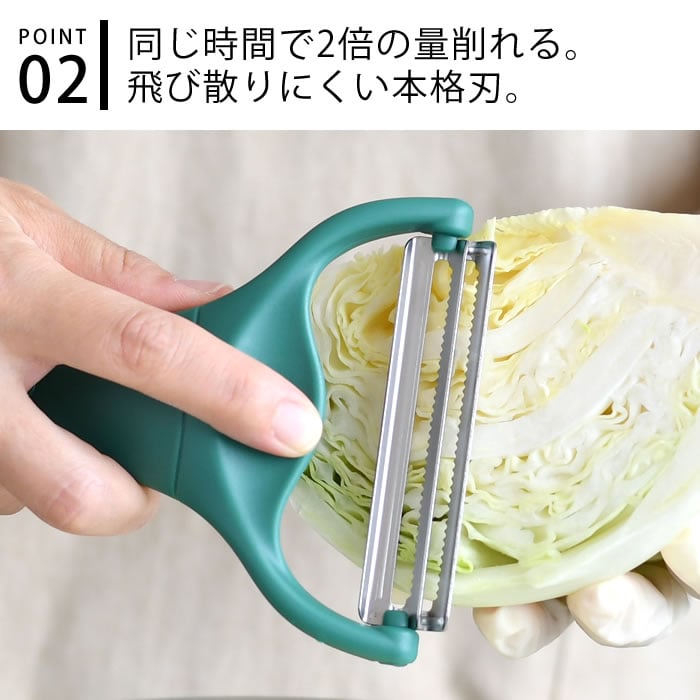 | キャベツ 千切り スライサー ののじ キャベピィMAX ダークグリーン キャベツ 千切り ピーラー キャベツスライサー 料理 調理器具 簡単 おしゃれ ステンレス 二枚刃 時短 キッチン ふわふわ 2枚刃 便利 実用的 |