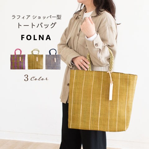 Folna かごバッグ トートバッグ ラフィア おしゃれ レディース 肩掛け 軽量 大きめ シンプル かわいい カジュアル ナチュラル フォルナ